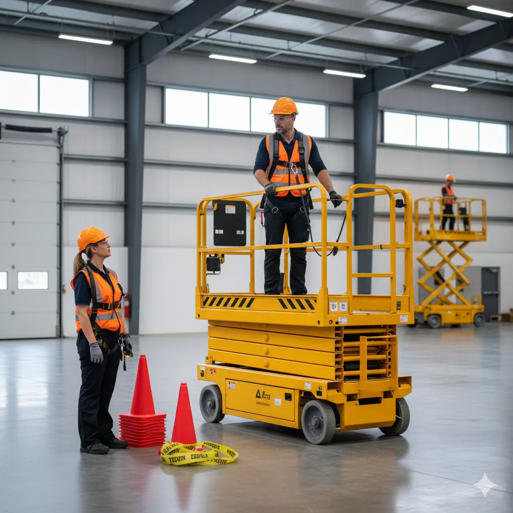 Safe operation of boom lifts and scissor lifts with hazard prevention best practices.